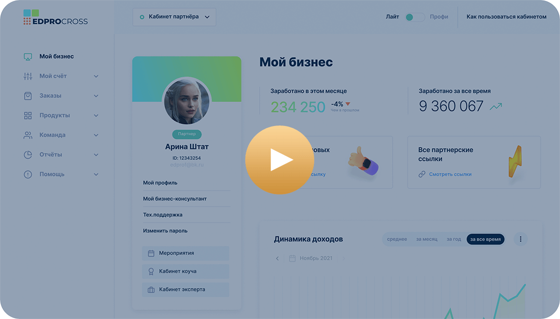 Как только вы становитесь партнёром, вам назначается бизнес-консультант. Он будет сопровождать вас, отвечать на ваши вопросы и помогать достичь результата.